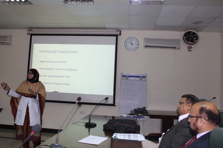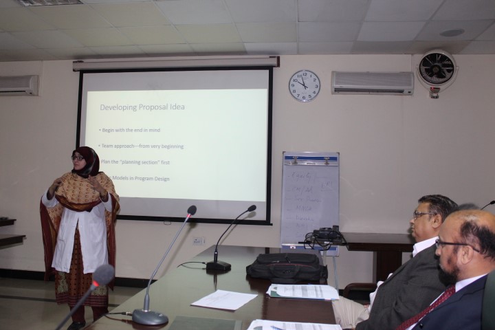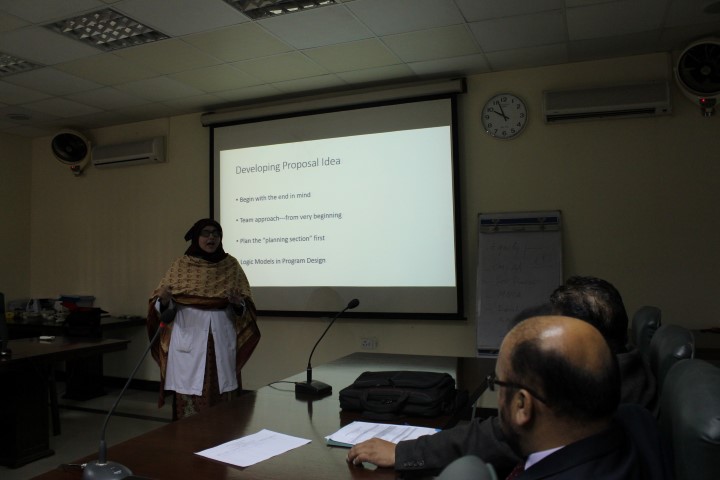 Dr. Durdana described approaches to an effective grant writing, highlighting different funding agencies and their processes of selecting proposals. She also described multiple lacunae in grant proposal writing which may lead to failure in getting attentions of funding agency. She pointed out that building relationship with funding agency plays a pivotal role in successful grant writing. Different methods were explained for successful communication and linkages with funding agencies.