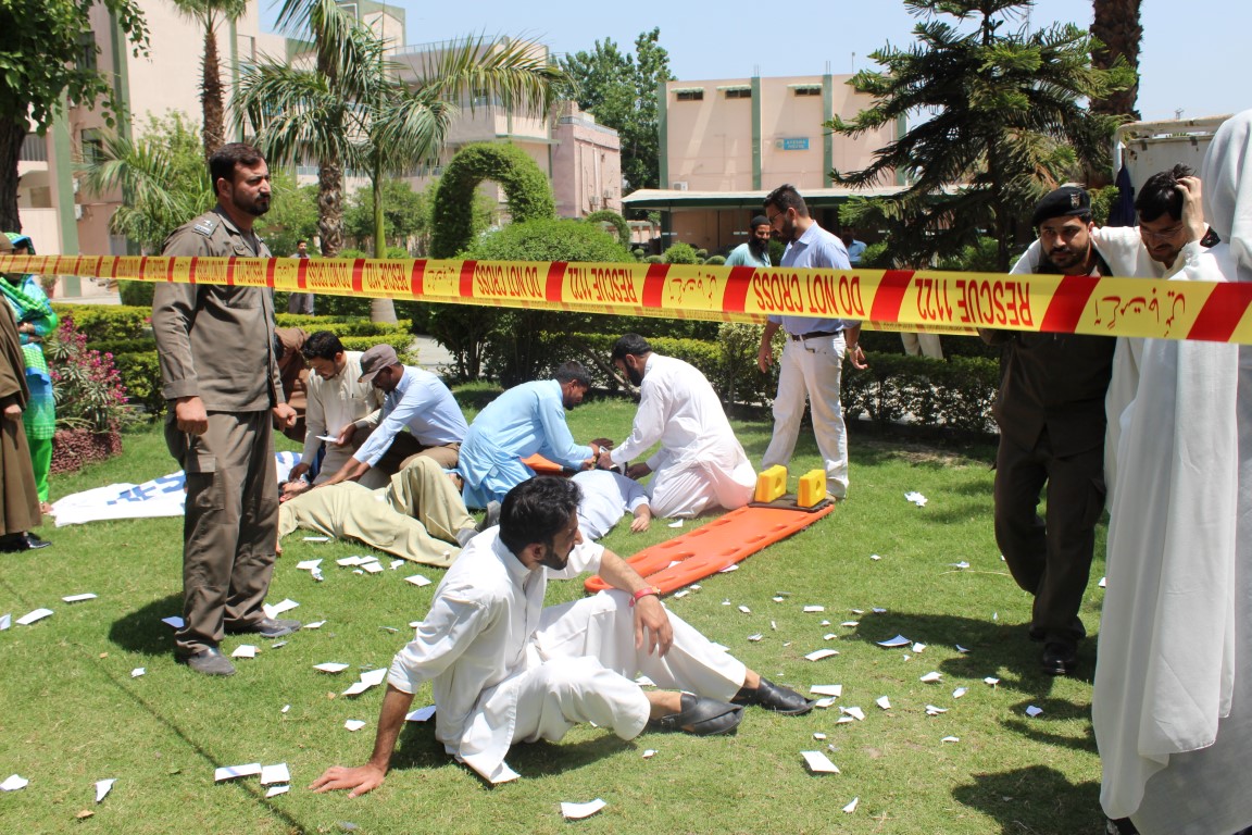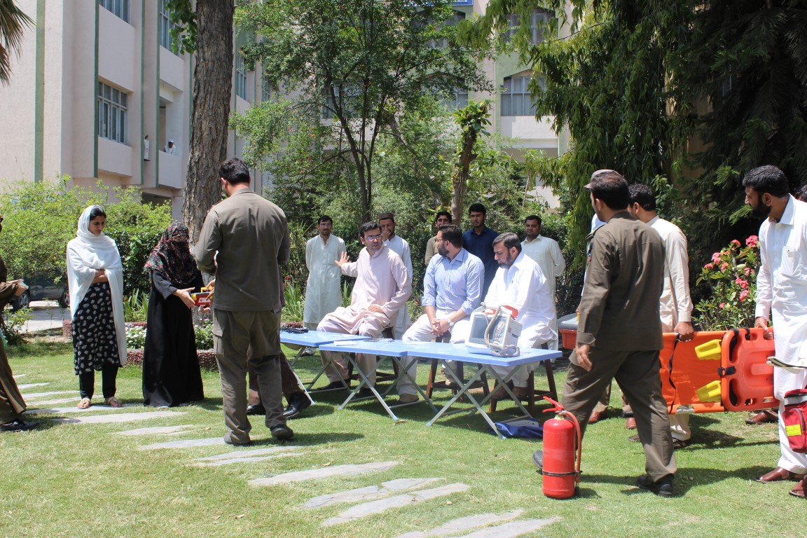 On Day 2, Mr. Inayat ur Rehman, Medical and Safety Instructor at Rescue 1122 explained the goals and objectives of the session. He and his team practically demonstrated basic life saving techniques. Further, Triage, Transfer, Treat and Transport (4 Ts of Rescue) activities were virtually performed as demo of mass casualty management in case of disaster.
